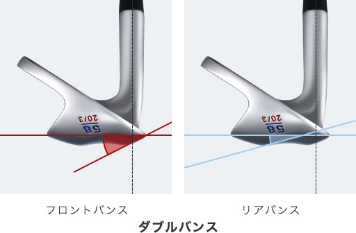 ソールセンターを凹ませた独自のツインカットソールが生み出すリーディングエッジ側のフロントバンスと後方のリアバンスを持つダブルバンス設計。フロントバンスにより砂に潜りにくいだけでなく、リアバンスによりさらに砂に潜りにくくさせることで、しっかりと砂をはじいて、バンカーからの脱出を強力にサポート。